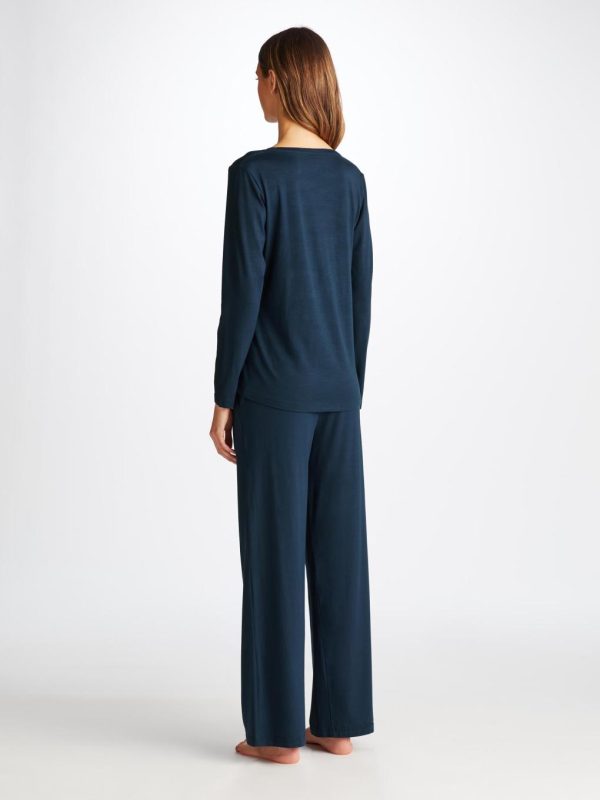 Our rich navy Lara long sleeve top has a relaxed but flattering shape with a curved, loose hem and offers a comfortable and natural fit allowing free movement. Fashioned from our signature soft micro modal which will retain its rich navy blue colour wash after wash.