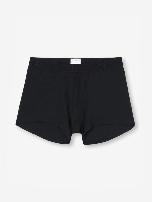 Our Alex boxer briefs in black are cut for a streamlined, classic look with a fitted shape, closed front and a shorter leg. A fabric-covered waistband provides gentle skin contact.