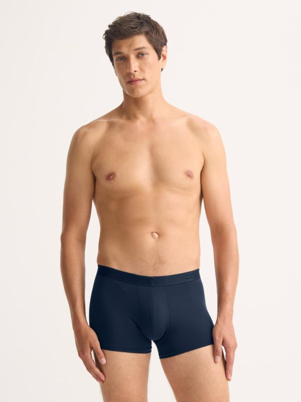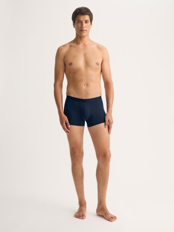 Our Alex boxer briefs in navy are cut for a streamlined, classic look with a fitted shape, closed front and a shorter leg. A fabric-covered waistband provides gentle skin contact.