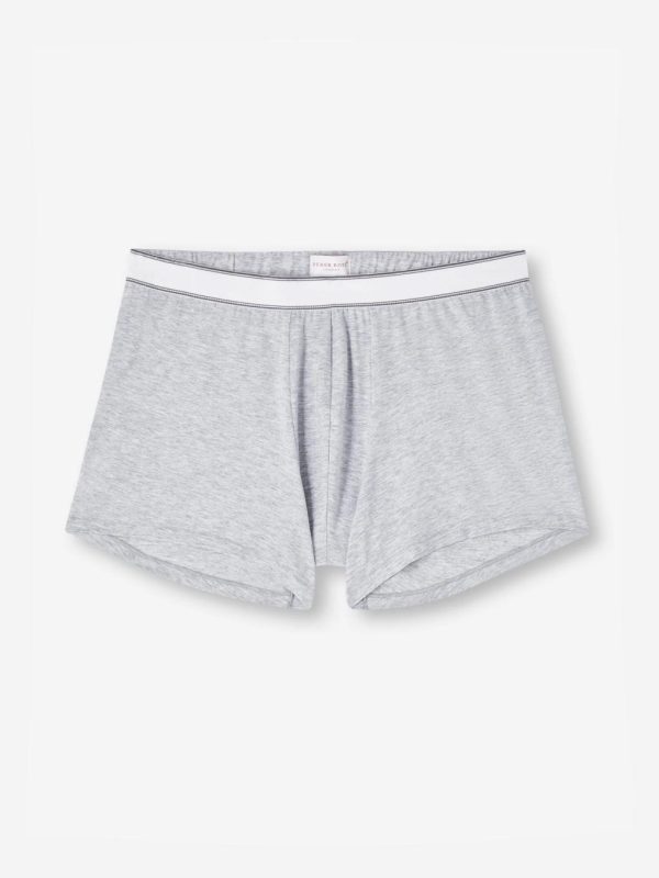 Our silver marl Ethan boxer briefs offer a fitted shape, closed front and shorter leg for a minimalist, streamlined look.