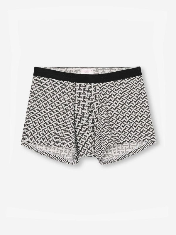 For those who prefer their boxer briefs with shorter legs, our pima cotton stretch hipster combines a closed front with a streamlined, shorter leg. Featuring a black and white geometric print inspired by the Labyrinth in the Greek myth of Theseus and the Minotaur.|