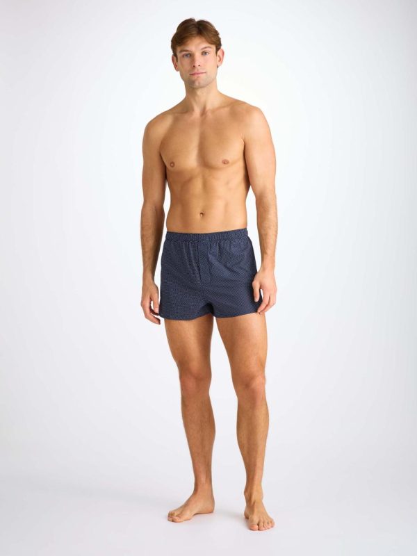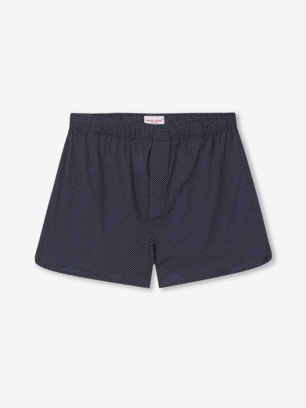 The Plaza 21 boxers are woven from our extra lightweight, super-soft and breathable pure cotton batiste, with a printed navy and white spot motif finish.