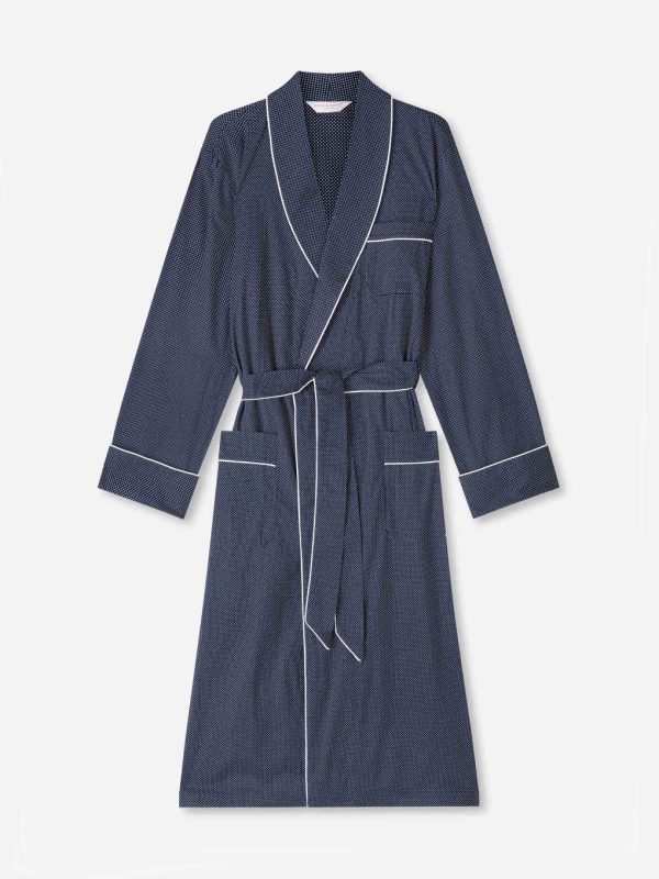 To care for your Cotton Batiste Navy Pin Dot Print Men’s Dressing Gown please be aware of the following care considerations: