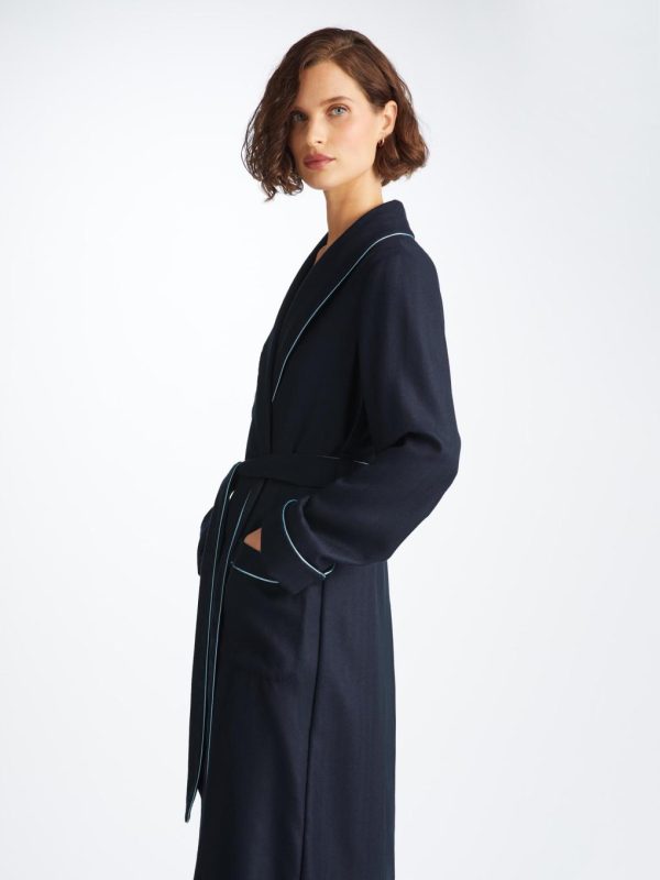 To care for your Duke Cashmere Navy Women’s Dressing Gown please be aware of the following care considerations: