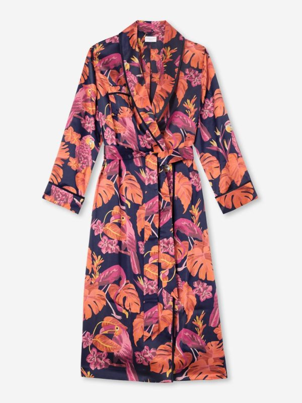We’ve combined our finest pure silk with our long dressing gown shape, so it falls just below the mid-calf. Discover the hand drawn jungle birds pattern, the flora and fauna print includes a mixture of tropical birds and luscious jungle flowers.