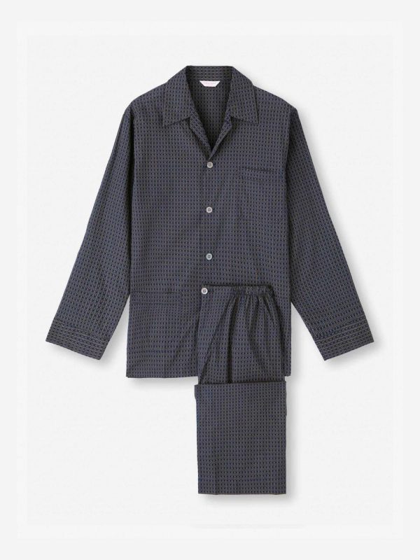 Derek Rose Gifts For Him | Classic Fit Pyjamas Cotton Batiste Navy Jungle Leaf Print Men