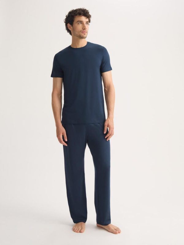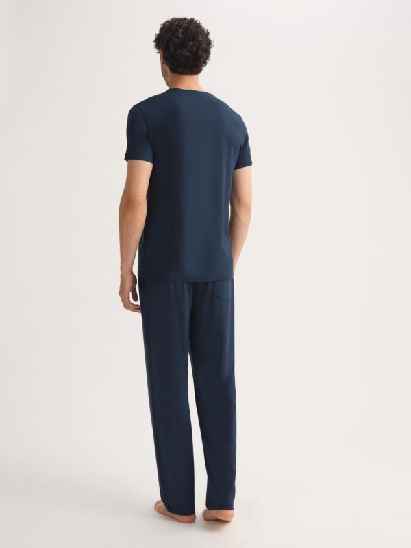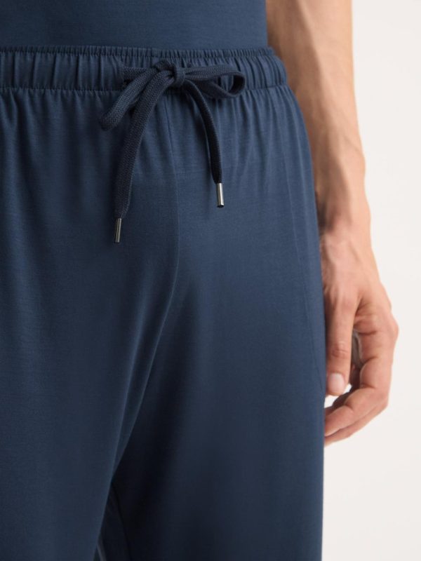 The ideal loungewear companion, the navy trouser fastens with an elastic and tie waistband for a winning combination of comfort and flattering fit.