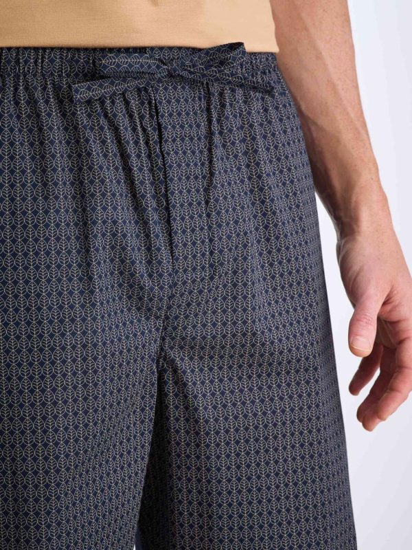 Derek Rose Gifts For Him | Lounge Trousers Cotton Batiste Navy Jungle Leaf Print Men