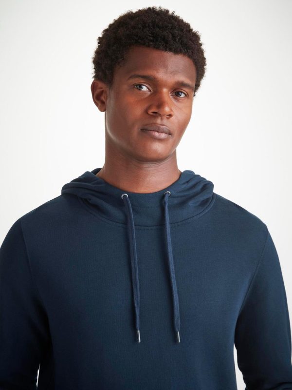 A brand new addition to our Quinn collection, our cotton modal blend pullover hoodie is a luxurious leisurewear essential. In a regular fit, this navy hoodie features a cosy funnel neck alongside a two panel hood for optimal comfort.|
