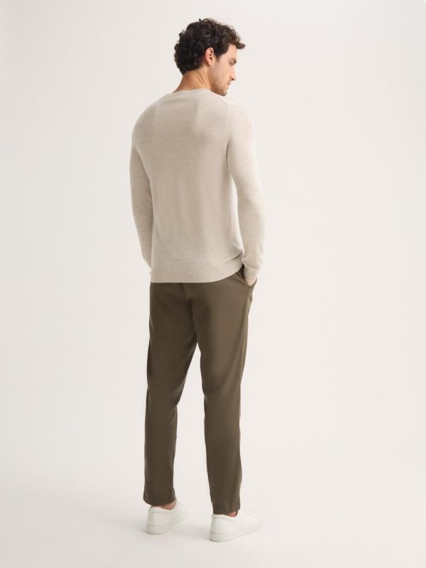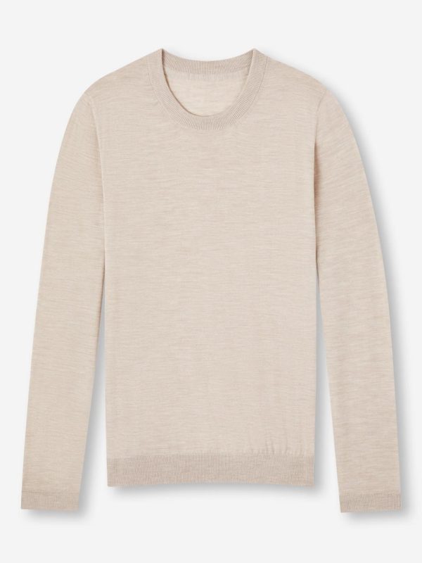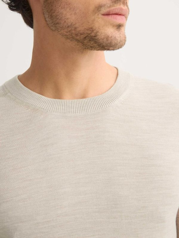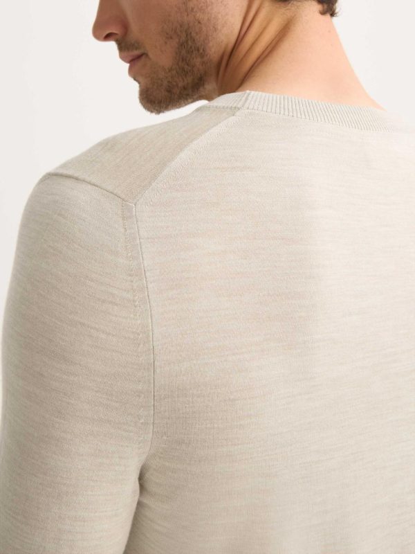 Designed with 100% merino wool, our Orson oat sweater has been created with a ribbed neckline and cuffs.|