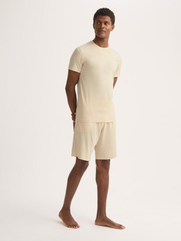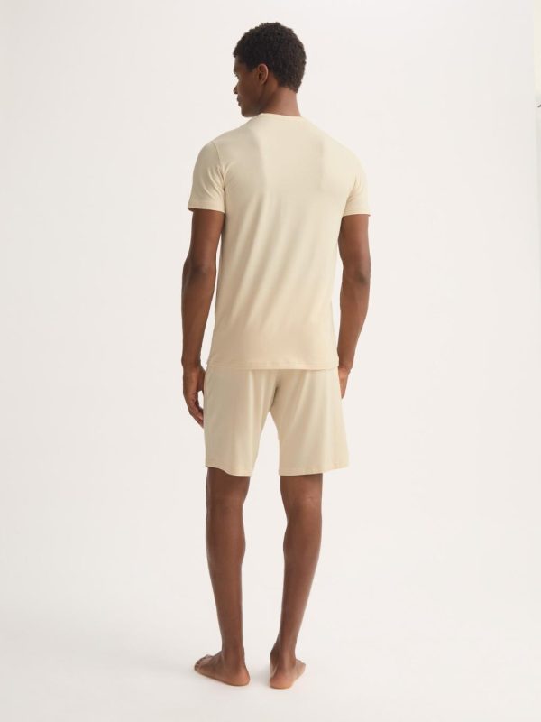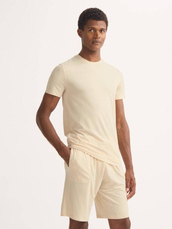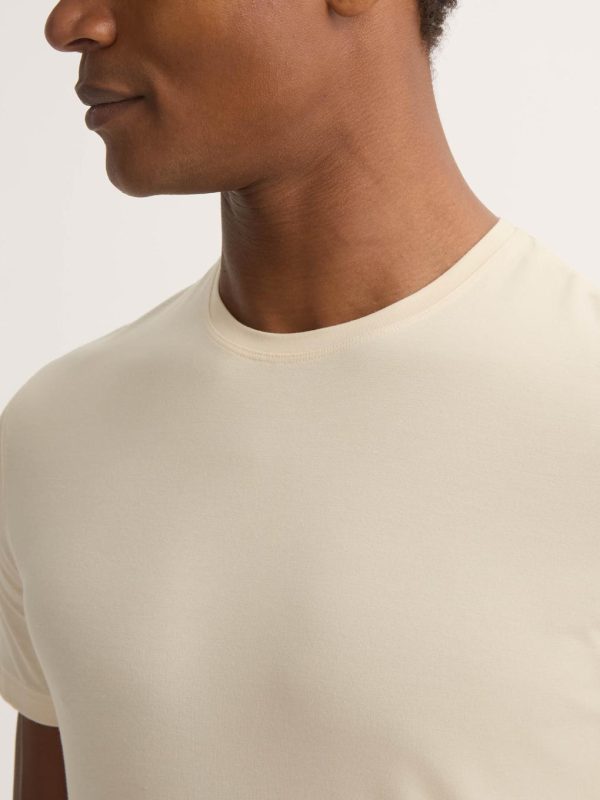 Our signature Basel men’s t-shirt in ecru is a wardrobe essential: versatile and classic. Made from a unique blend of stretch micro modal for an extraordinarily soft and comfortable wear, it will quickly become your go-to t-shirt. Perfect for sleeping, lounging or making a long-haul flight a lot more bearable.