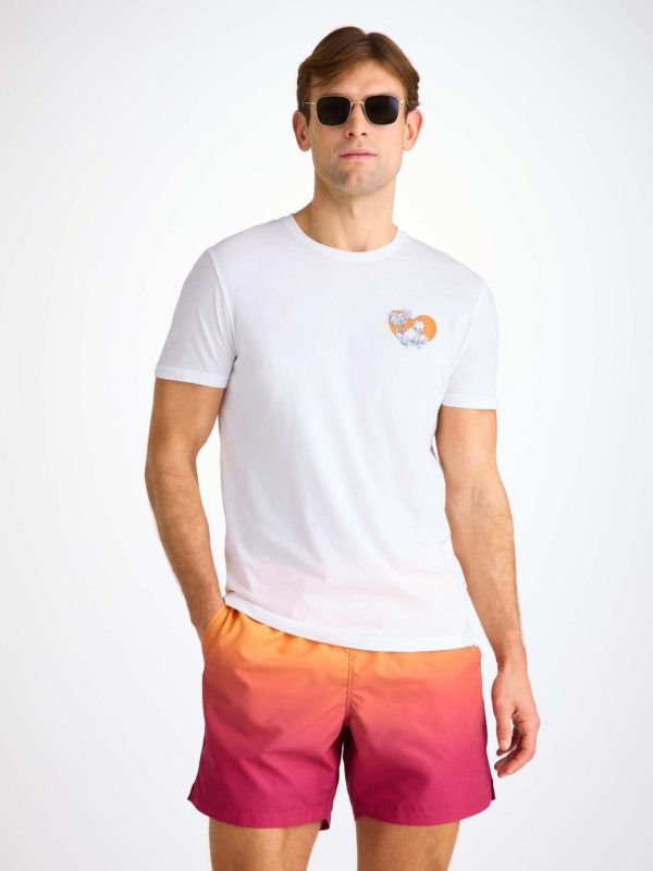 Derek Rose Gifts For Him | T-Shirt Pima Cotton White Jungle Motif Men
