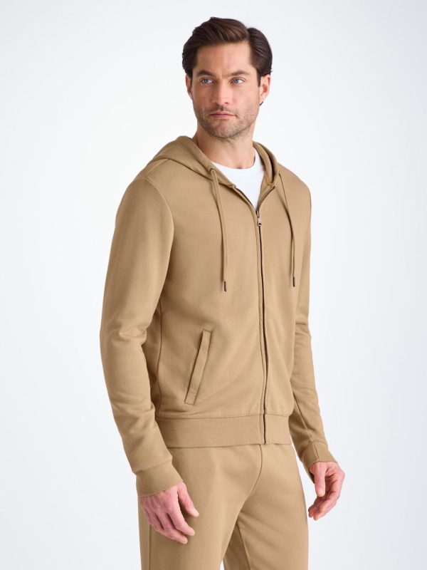 Our Quinn hoodie in camel is stylish, yet practical. Featuring zipped front pockets with welts and with ribbed cuffs and neck trim, this hoodie is designed to hold its shape wash after wash.