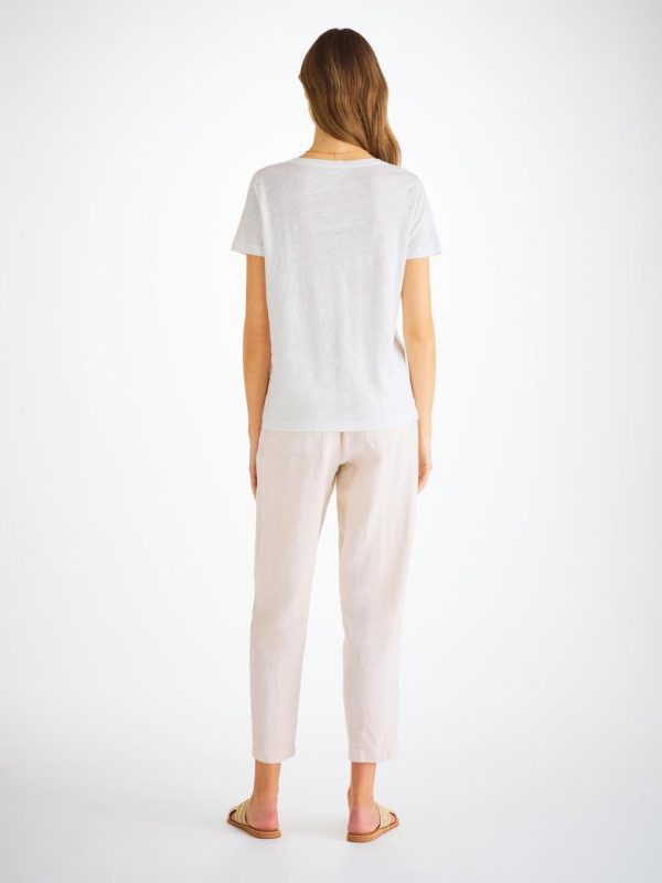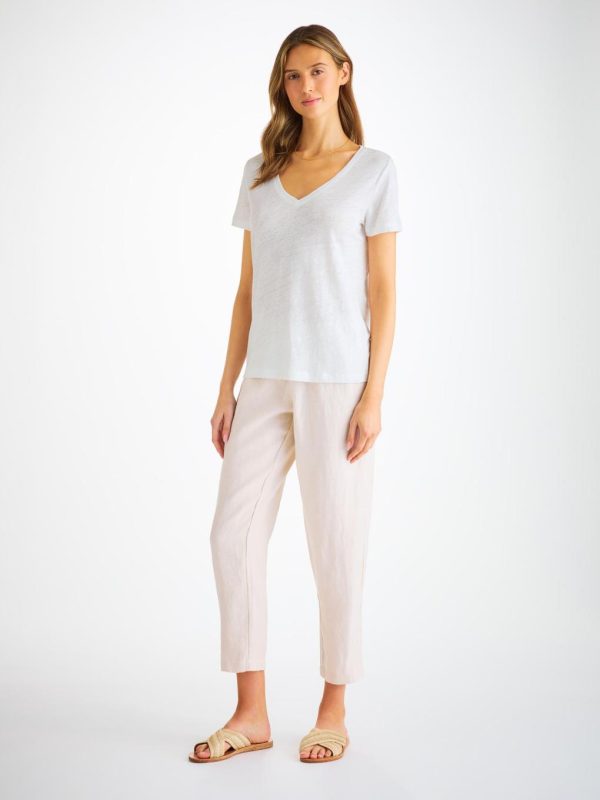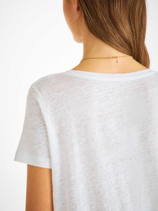 Our women’s Jordan v-neck t-shirt needs to be touched to be believed. Jordan is an exceptionally soft pure linen jersey; this is like no other linen shirt you own. A fabric that typically comes with that rough feeling, our Jordan is cut from a super-soft and lightweight pure linen, knitted with a very fine yarn and finished with a soft wash.