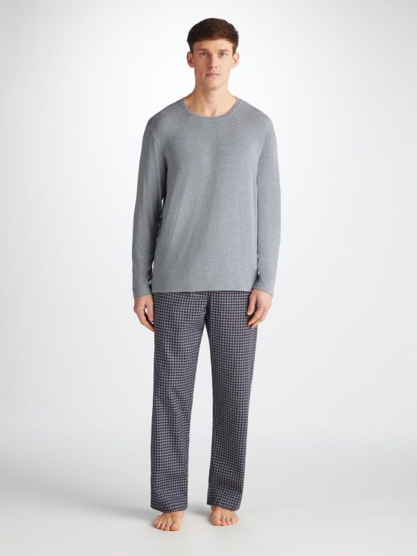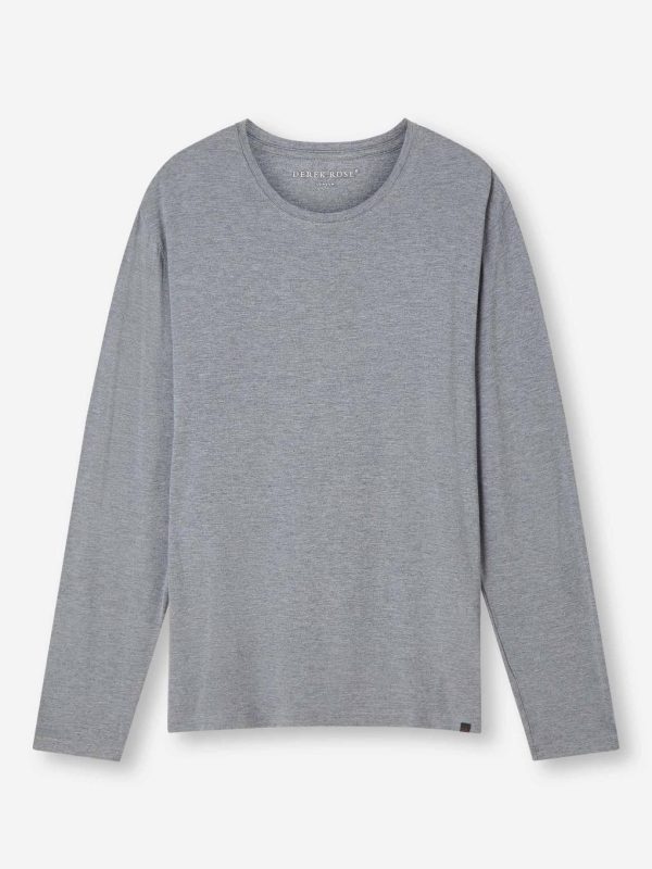 Derek Rose Lounge Tops | Long Sleeve T-Shirt Marlowe Micro Modal Stretch Charcoal Men