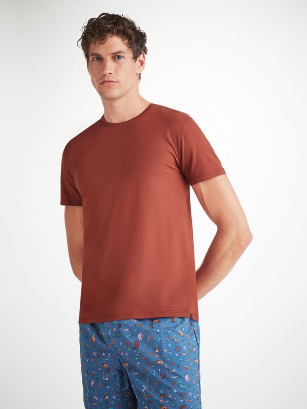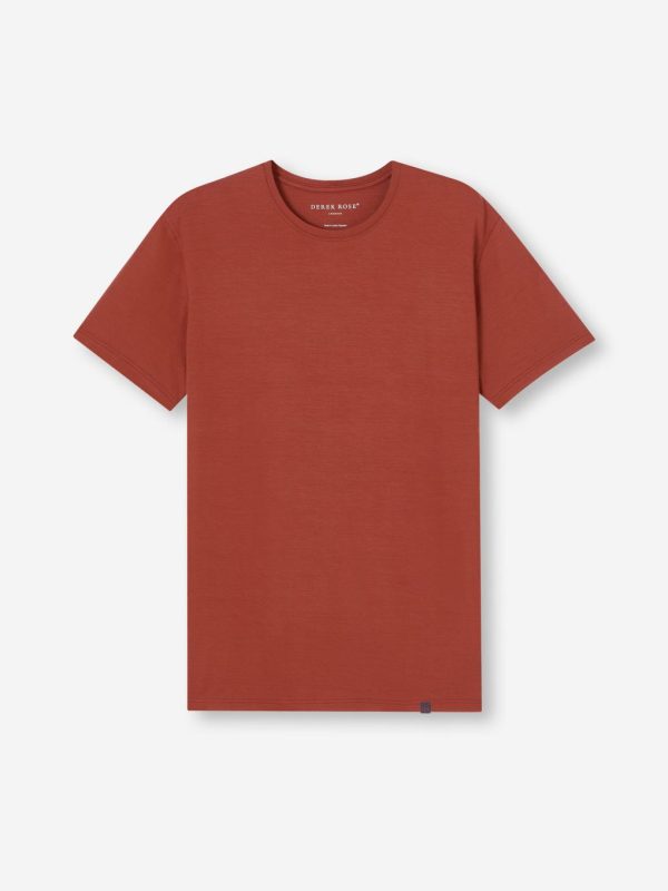 Our signature Basel men’s t-shirt in rust red is a wardrobe essential: versatile and classic. Made from a unique blend of stretch micro modal for an extraordinarily soft and comfortable wear, it will quickly become your go-to t-shirt. Perfect for sleeping, lounging or making a long-haul flight a lot more bearable.