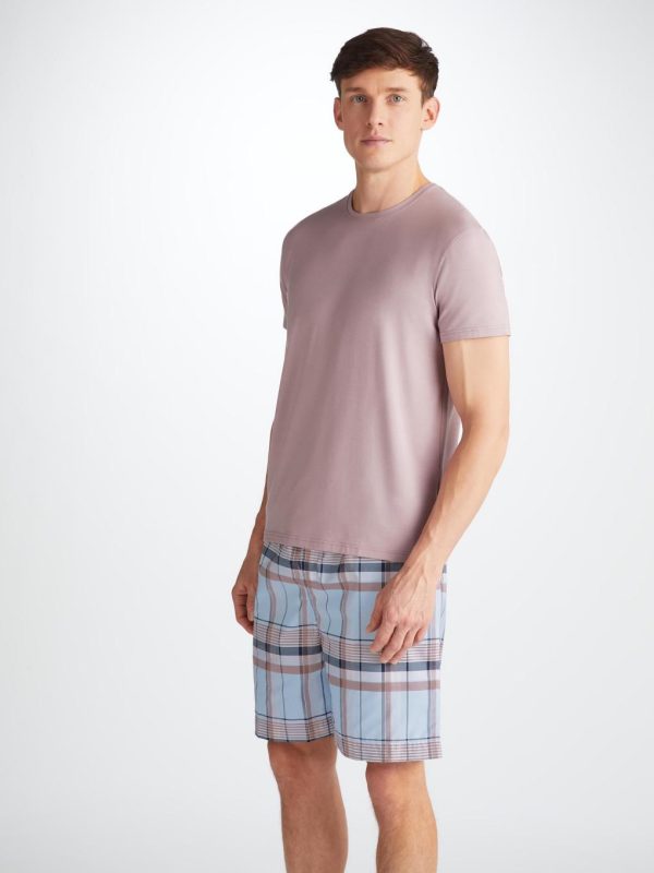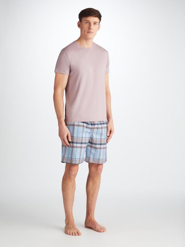 Refresh your loungewear with our Barker 38 lounge shorts in our seasonal tones on a sky blue base.|