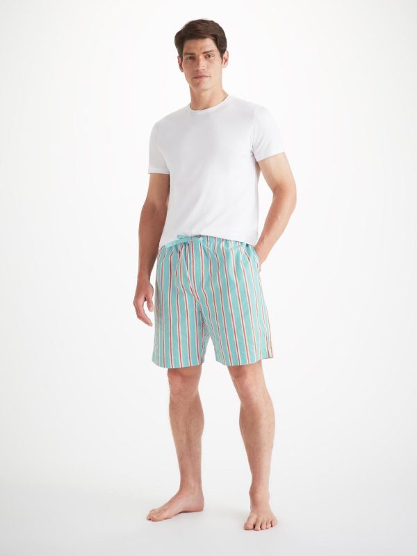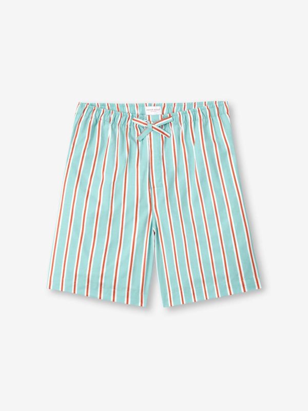 Refresh your loungewear with our Royal 223 lounge shorts in a turquoise, red and white inspired by the stripes seen on ships.