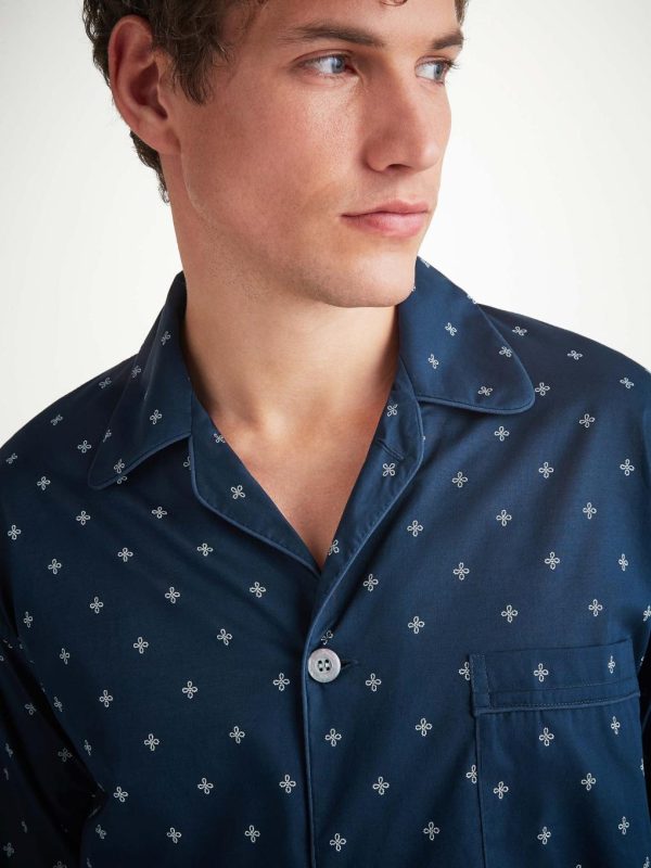To care for your Cotton Batiste Navy Sailor’s Knot Print Men’s Classic Fit Pyjamas please be aware of the following care considerations: