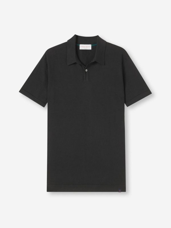 Derek Rose Polos | Polo Shirt Jacob Sea Island Cotton Black Men