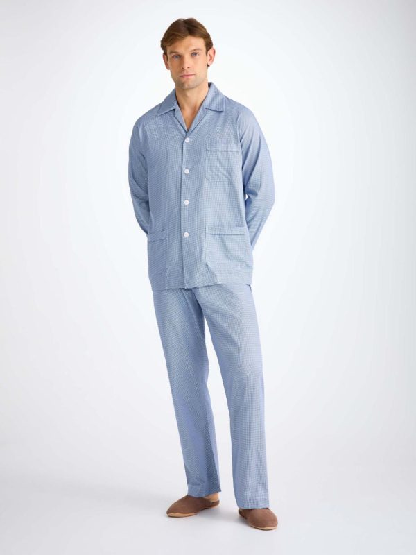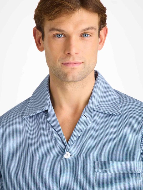 Derek Rose Pyjamas | Classic Fit Pyjamas Cotton Navy Puppytooth Pattern Men
