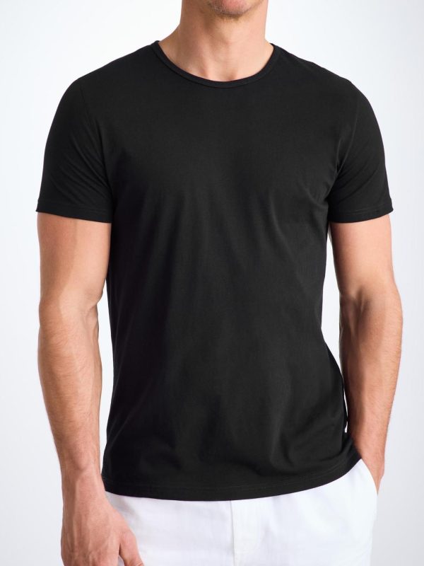 Our black Riley crew-neck t-shirt is cut from 100% fine gauge pima cotton for a luxurious essential. This supersoft fabric is lightweight and breathable making it perfect for enjoying the sun in comfort.