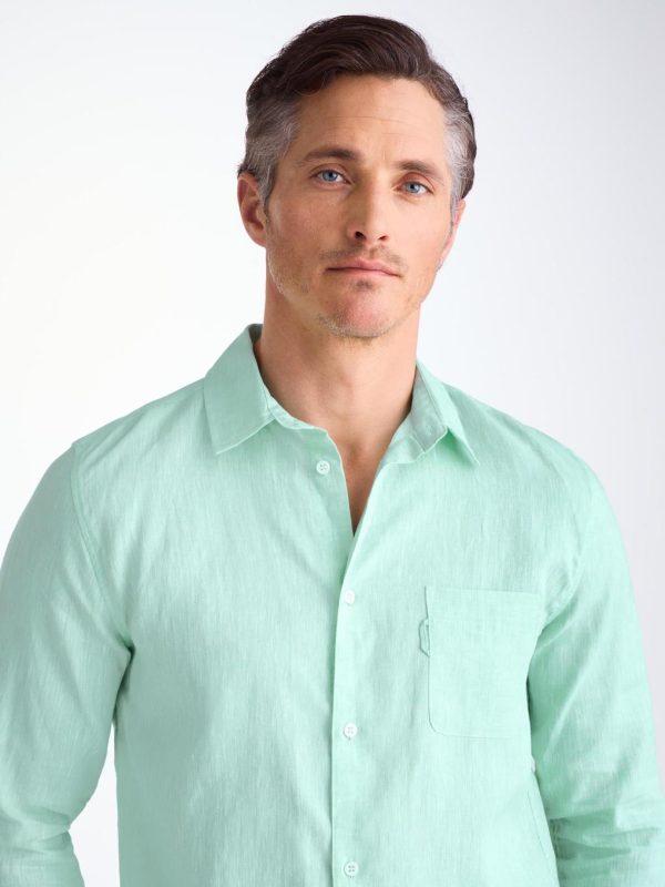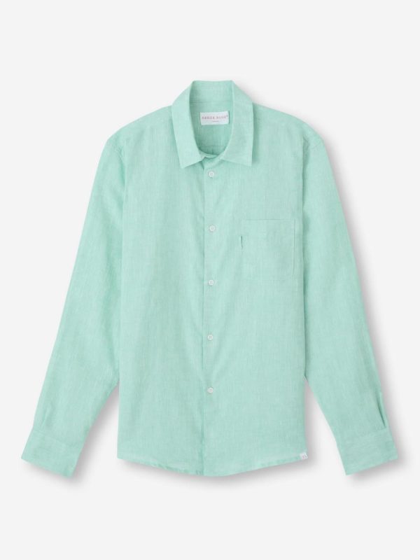Derek Rose Shirts | Shirt Monaco Linen Mint Green Men