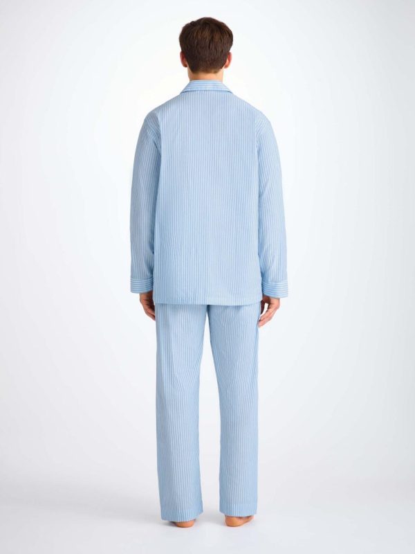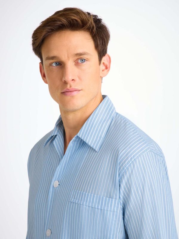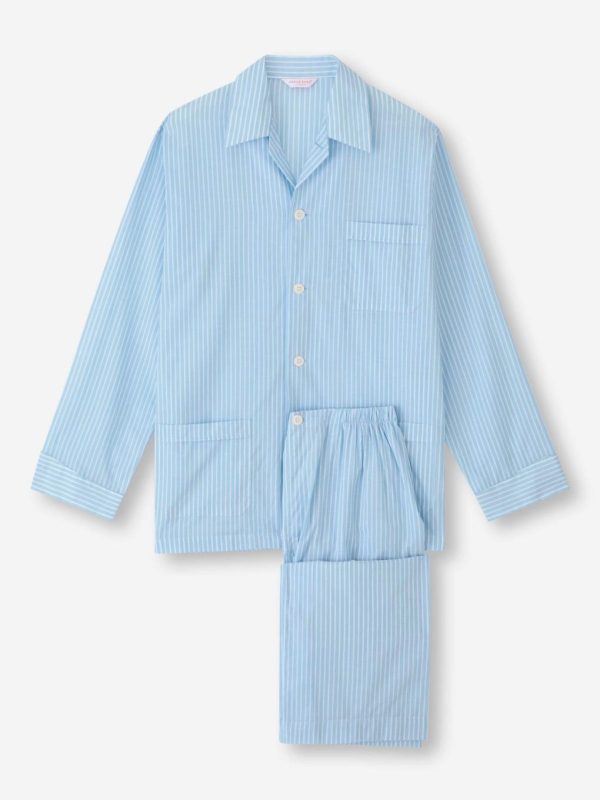 Our Amalfi cotton has been part of our brand since 1980 when Derek Rose embarked on a search for lightweight fabrics. It has truly passed the test of time. Wash and wear this pyjama set for years to come because this fabric lasts wonderfully well. Complete with a soft sky blue and white stripe.