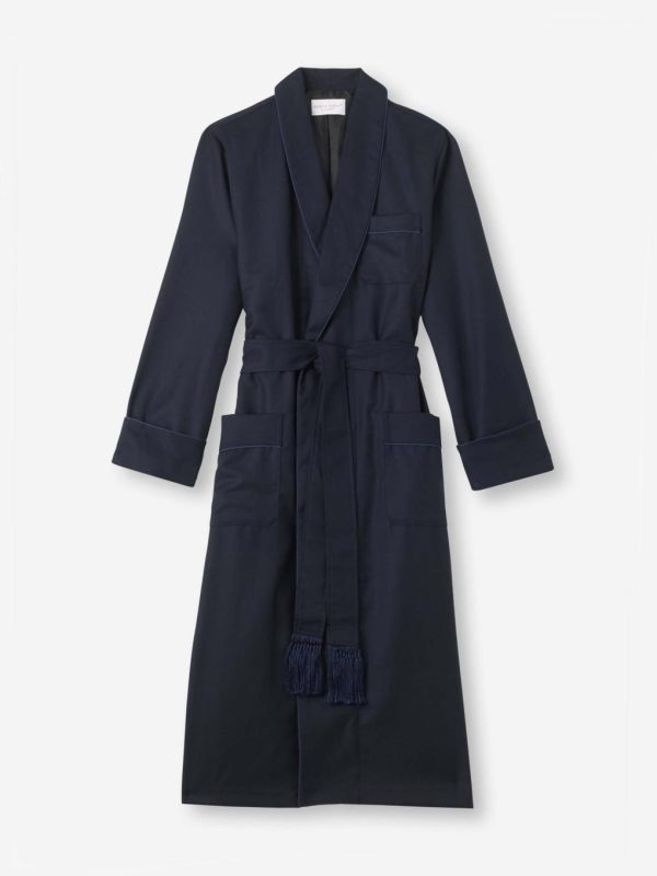 A home wardrobe staple, our Westminster gown features a classic shawl collar, navy piping, a breast pocket and two front pockets for practicality while around the house. It’s fastened with a tasselled belt for the perfect fit and finished with internal ties and fully lined inside.