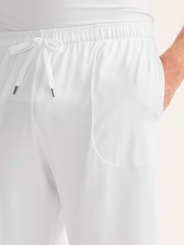 Our Basel jersey shorts in white are a testament to this and offer a combined elastic and tie waistband for the perfect fit. They also feature two front side pockets and a rear back pocket to keep your phone and essentials close while you’re lounging.