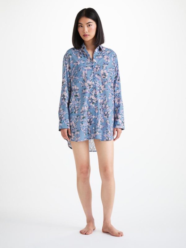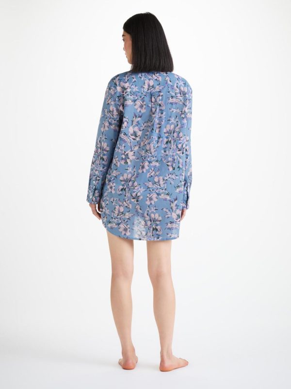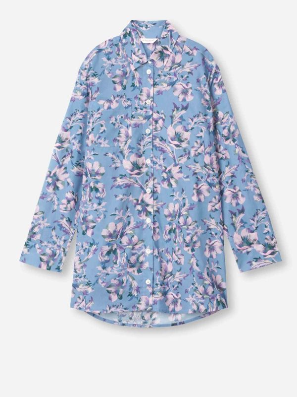 Seen here in a blue, hand drawn floral print inspired by the plant life found along the blustery cliff walks of the British coastline. This nightshirt has been constructed with a box pleat for ease of movement and simple curved hem with side vents for a perfect nights sleep.