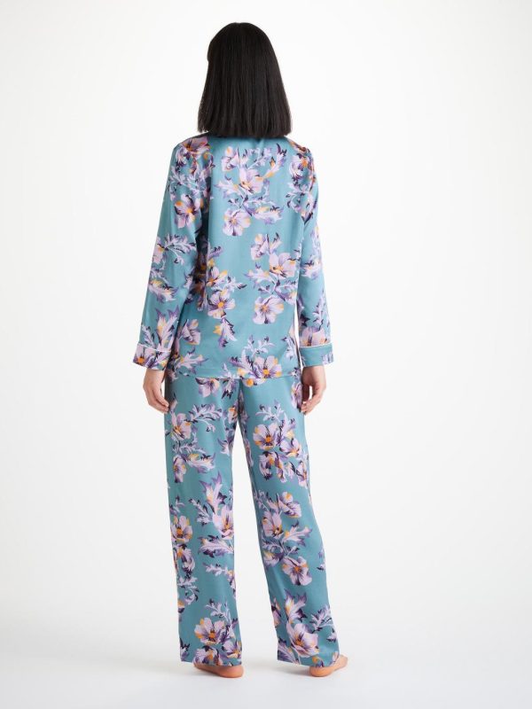 Produced in extremely limited quantities and the result of hours of loving craftwork by our skilled seamstresses in our Cheshire, England silk studio, this luxury blue pyjama set is delicately crafted to ensure we maintain the supremely soft and smooth satin finish.