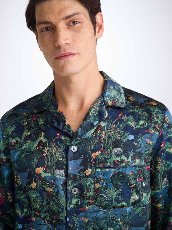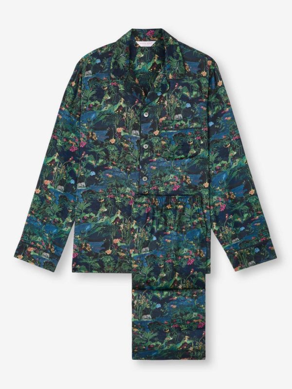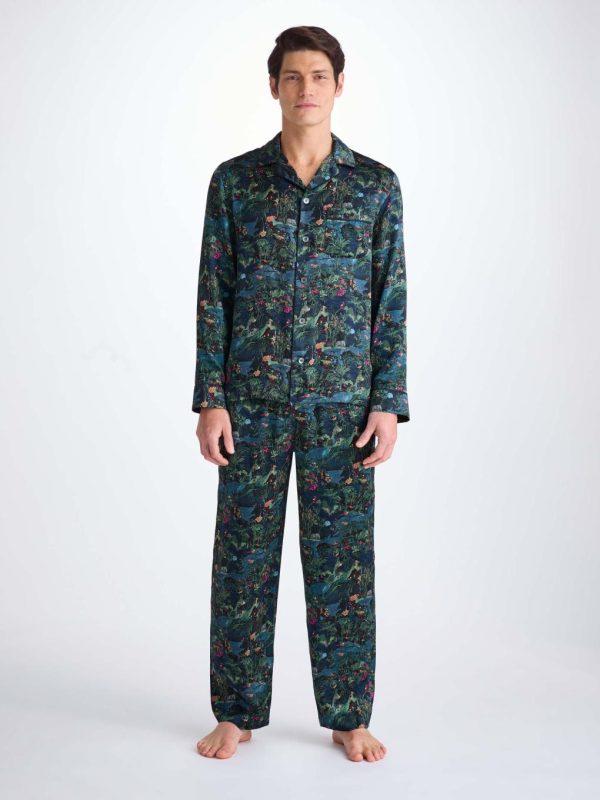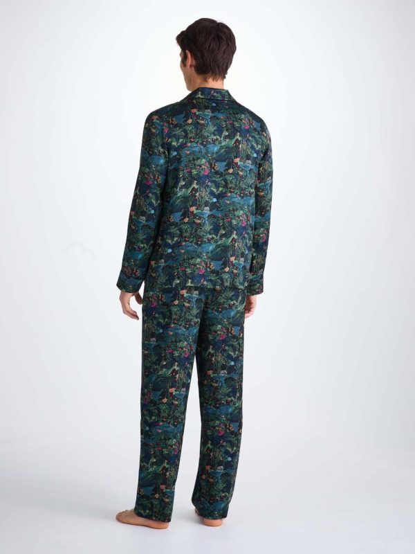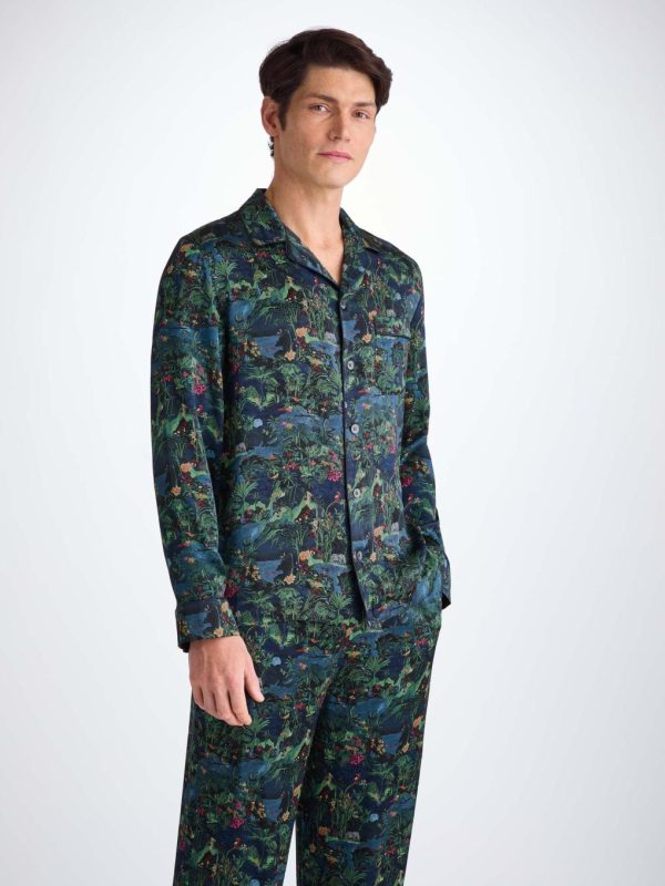Derek Rose Sleep & Lounge | Pyjamas Silk Satin Multi Midnight Jungle Print Men