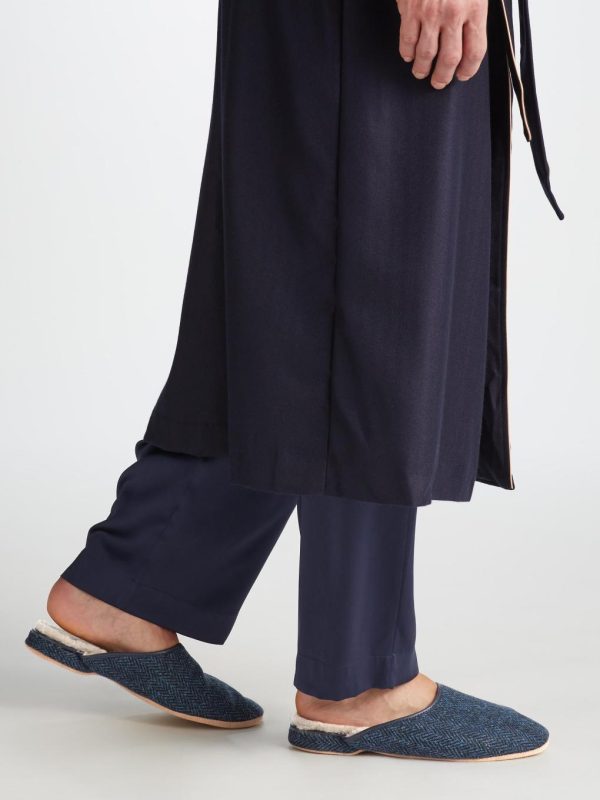 The sole is made from soft suede meaning you can glide around in comfort in the morning without waking the family. The slippers are finished with a navy leather trim for an added touch of luxe.