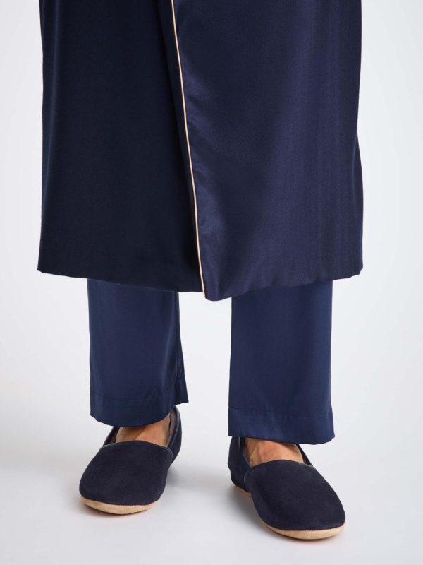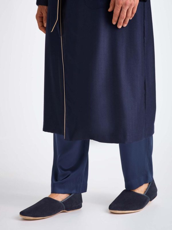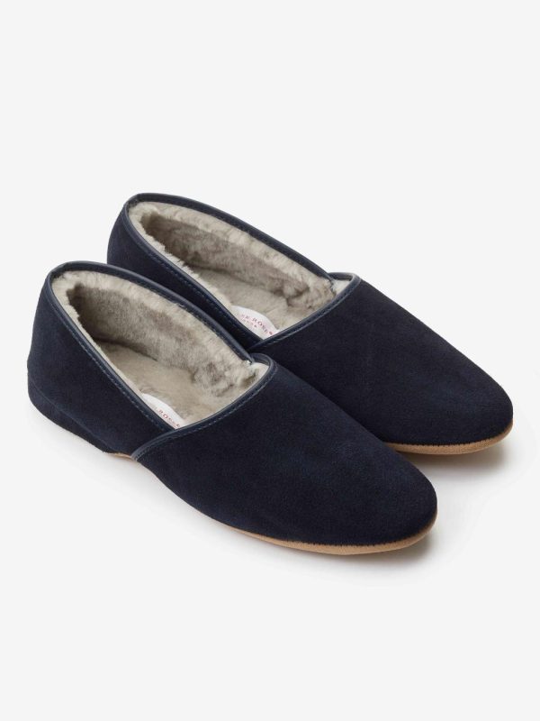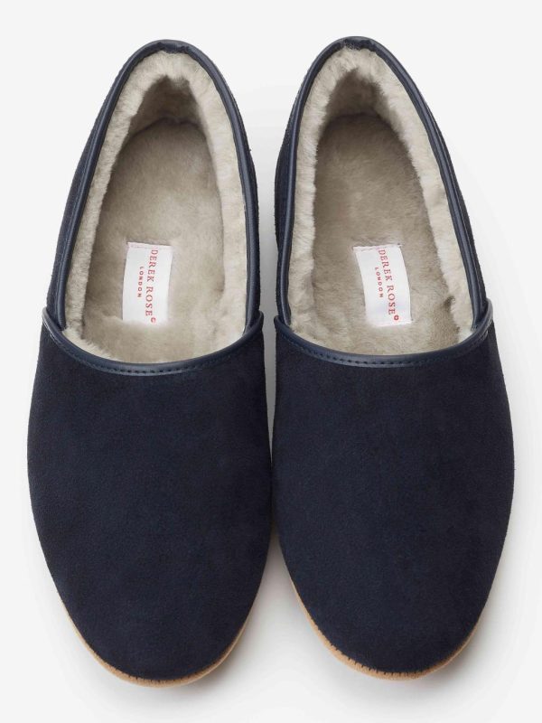 The sole is made from soft suede meaning you can glide around in comfort in the morning without waking the family. The slippers are finished with a navy leather trim for an added touch of luxe.