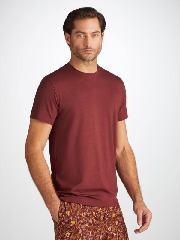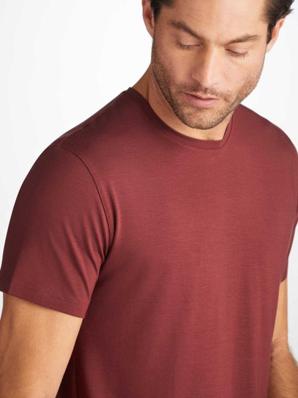 Our signature Basel men’s t-shirt in burgundy is a wardrobe essential: versatile and classic. Made from a unique blend of stretch micro modal for an extraordinarily soft and comfortable wear, it will quickly become your go-to t-shirt. Perfect for sleeping, lounging or making a long-haul flight a lot more bearable.|