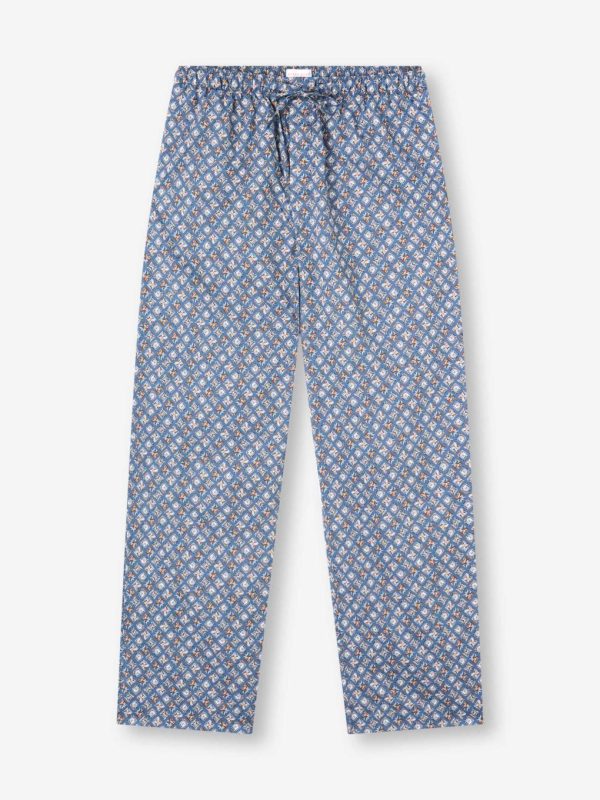 Derek Rose Trousers | Lounge Trousers Cotton Batiste Blue Multicolour Diamond Print Men