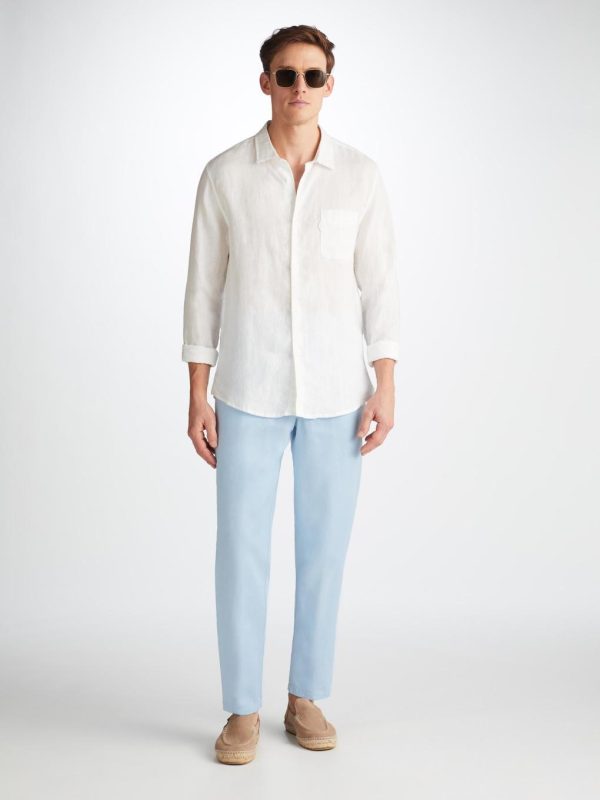 Our Sydney trousers in light blue are cut for a regular fit with a slight taper at the ankle for the perfect, warm weather ready style.